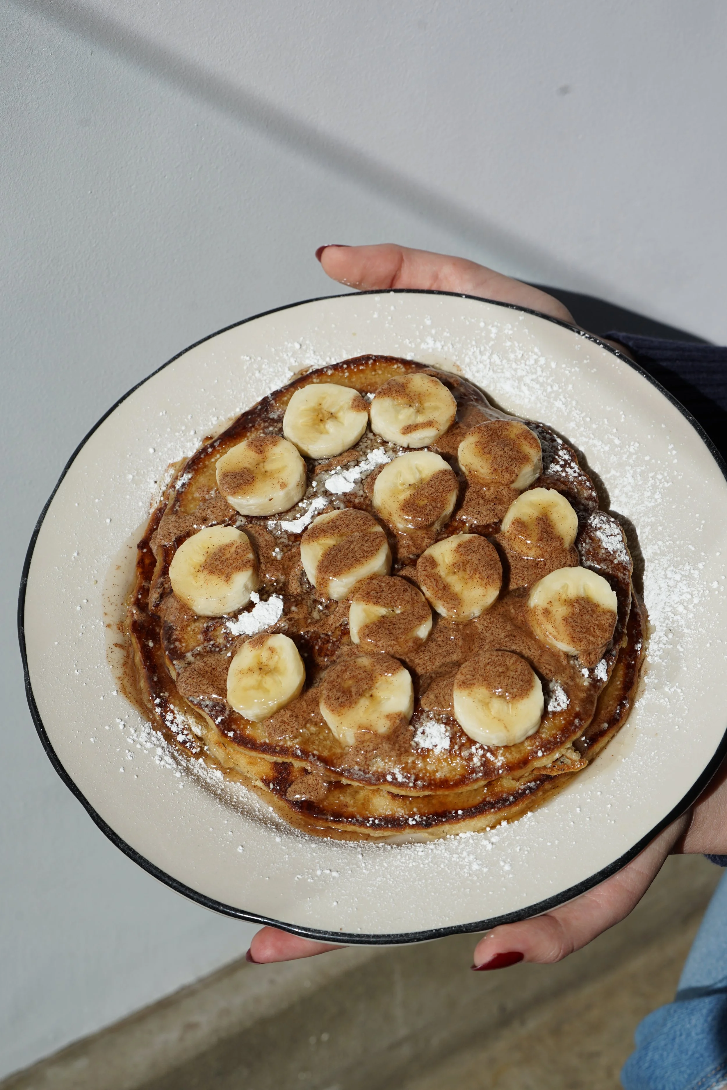 with 2 Organic Eggs, Choice of Protein, 2 Chocolate Chip or Blueberry or Banana Cinnamon, and Whip Cream